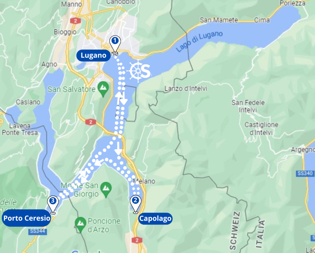 - Bitte beachten Sie, dass der Luganer See sowohl in der Schweiz als auch in Italien liegt. Beide Länder haben unterschiedliche Vorschriften bzgl. der Notwendigkeit eines Bootsführerscheins.