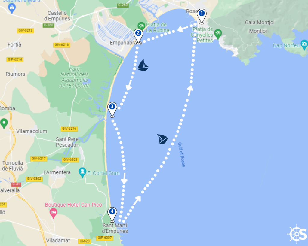 Der Golf de Roses ist ein Urlaubsparadies, welches in Katalonien – im äußersten Nordosten von Spanien – liegt. Hier, an der Costabrava, werden Sie unendlich lange Sandstrände, unzählige Möglichkeiten zum Schlemmen und auch für alle Arten von Wassersport finden. Insbesondere Ausflüge zu Wasser sind hier bei den Urlaubern beliebt. Lassen Sie sich durch die folgende Route informieren und auch auf den Geschmack für einen Bootausflug im Golf de Roses bringen!