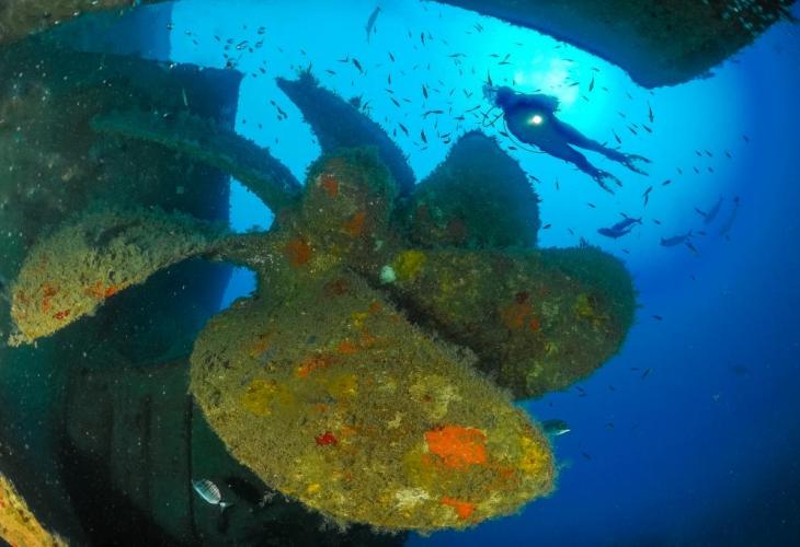 Es liegt 25m unter der Wasseroberfläche, kann aber bis zu einer Tiefe von 46m betaucht werden – was diesen Spot zu einem für fortgeschrittene Taucher macht.
