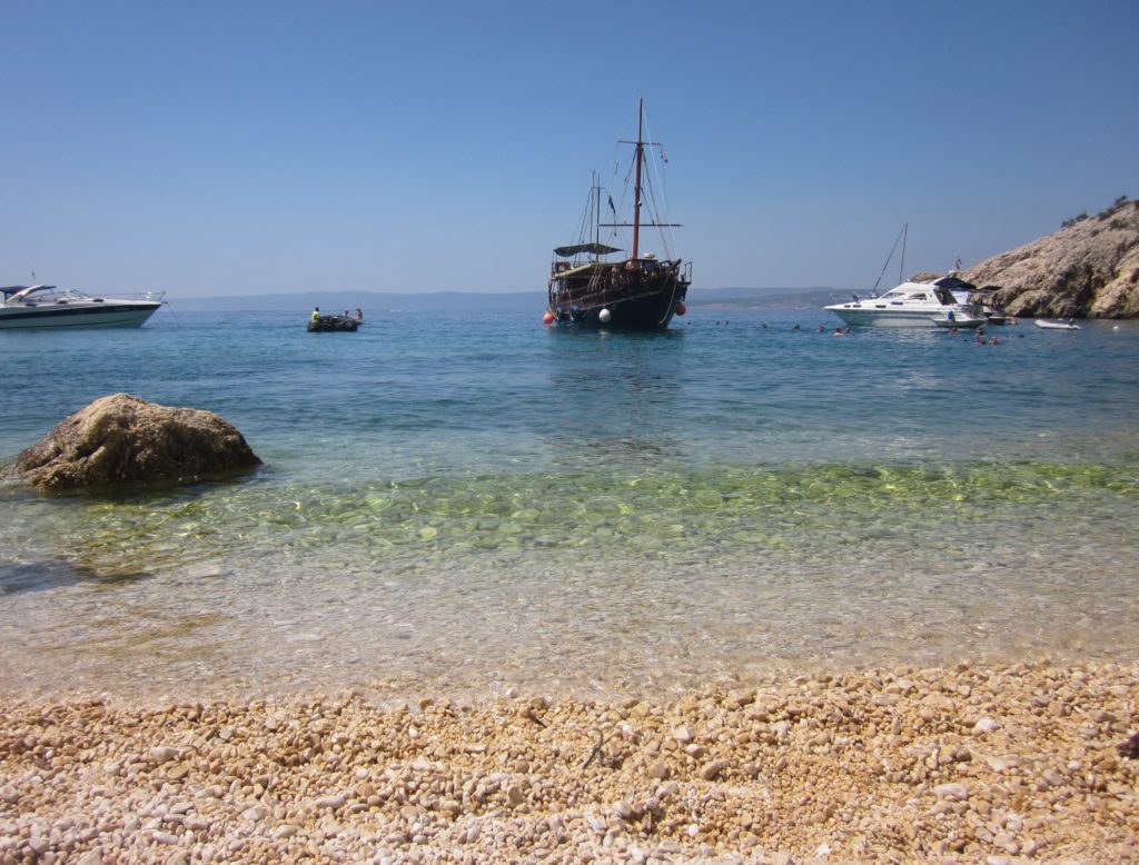 Steuern Sie nun wieder auf Krk zu. Die weitere Reise führt Sie vorbei an der Küste von Stara Baška und zu einer kleinen, wunderschönen Bucht, der Fox Bay (Fuchsbucht). Wir haben hier unseren großen Zwischenstopp auf unserer Krk Tagesboot-Route gemacht, um zu Mittag zu essen und anschließend schnorcheln zu gehen. Die natürlichen Gegebenheiten hier (klares Wasser und felsiges Ufer) sind perfekt dafür geeignet!