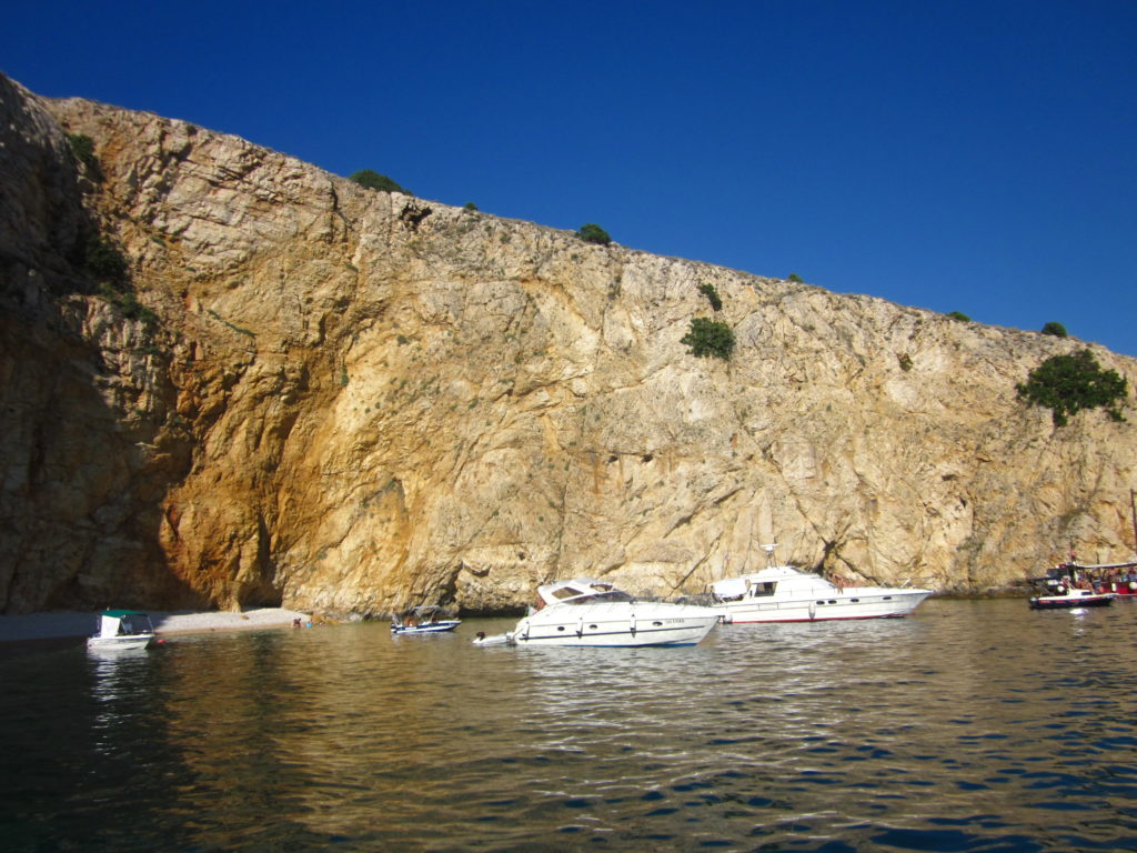 Zunächst fahren Sie süd-westlich zur Insel Plavnik herunter. Kein einziger Mensch lebt hier, und doch ist die Insel nicht gänzlich unbewohnt. Steuern Sie an den steilen, goldenen Kliffs vorbei und schauen Sie etwas genauer hin: Sie werden riesige Geier in den Baumwipfeln entdecken! Wir fanden die Tiere etwas unheimlich, aber auf jeden Fall auch sehr beeindruckend.