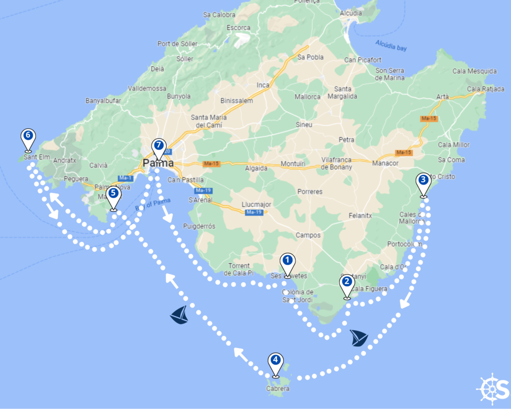 Lassen Sie sich durch unsere 7-tägige Route für einen Segeltörn entlang Mallorcas Südküste inspirieren!