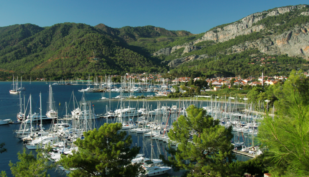 Göcek ist eine kleine Stadt im Südwesten der Türkei, die nicht weit von Marmaris und Fethiye entfernt am östlichen Mittelmeer liegt. Sie besitzt einen natürlichen Hafen und liegt dank dessen einzigartiger Geographie relativ ruhig und geschützt vor Winden in der gleichnamigen Bucht. Rund um Göcek herum werden Sie viele andere Buchten, Inseln und das weltberühmte türkisfarbene Wasser der türkischen Mittelmeerküste vorfinden. Zudem verfügt die Bucht selbst über sechs erstklassige Yachthäfen, die Ihnen als perfekter Ausgangspunkt für Ihren Segeltörns dienen können.