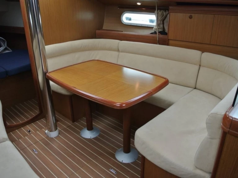 C'est un bateau de croisière armé en semi-hauturier (moins de 60 MN), très marin, très confortable et facile à barrer en équipage réduit.